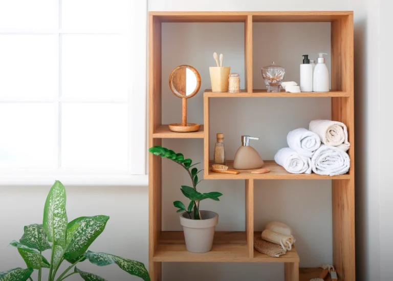 Vanities flotantes que liberan el espacio, muebles con lavamanos integrados que simplifican tu rutina, y organizadores que ponen orden al caos. Porque el lujo también está en lo práctico.